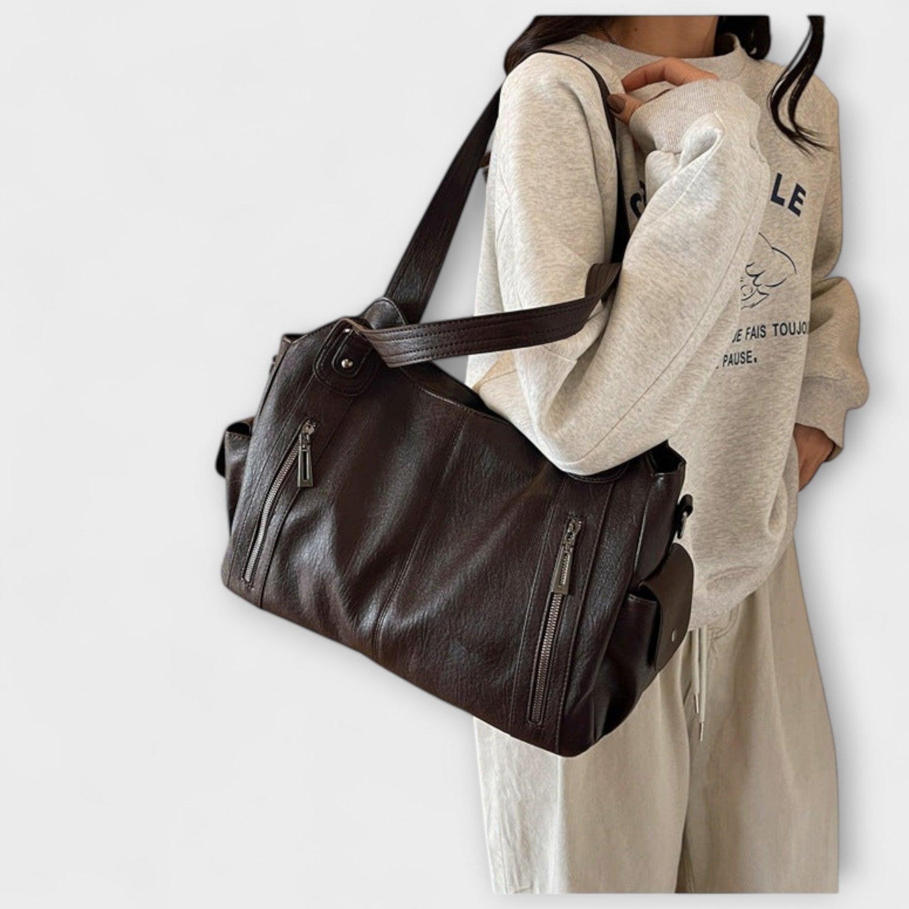 La bolsa de mano de cuero de Azzura combina un diseño minimalista con la practicidad del día a día. Fabricada con un robusto cuero sintético de aspecto elegante, ofrece un amplio espacio de almacenamiento y compartimentos inteligentes para todo lo importante. Las asas resistentes garantizan comodidad, perfectas para el trabajo, el ocio o viajes por la ciudad.