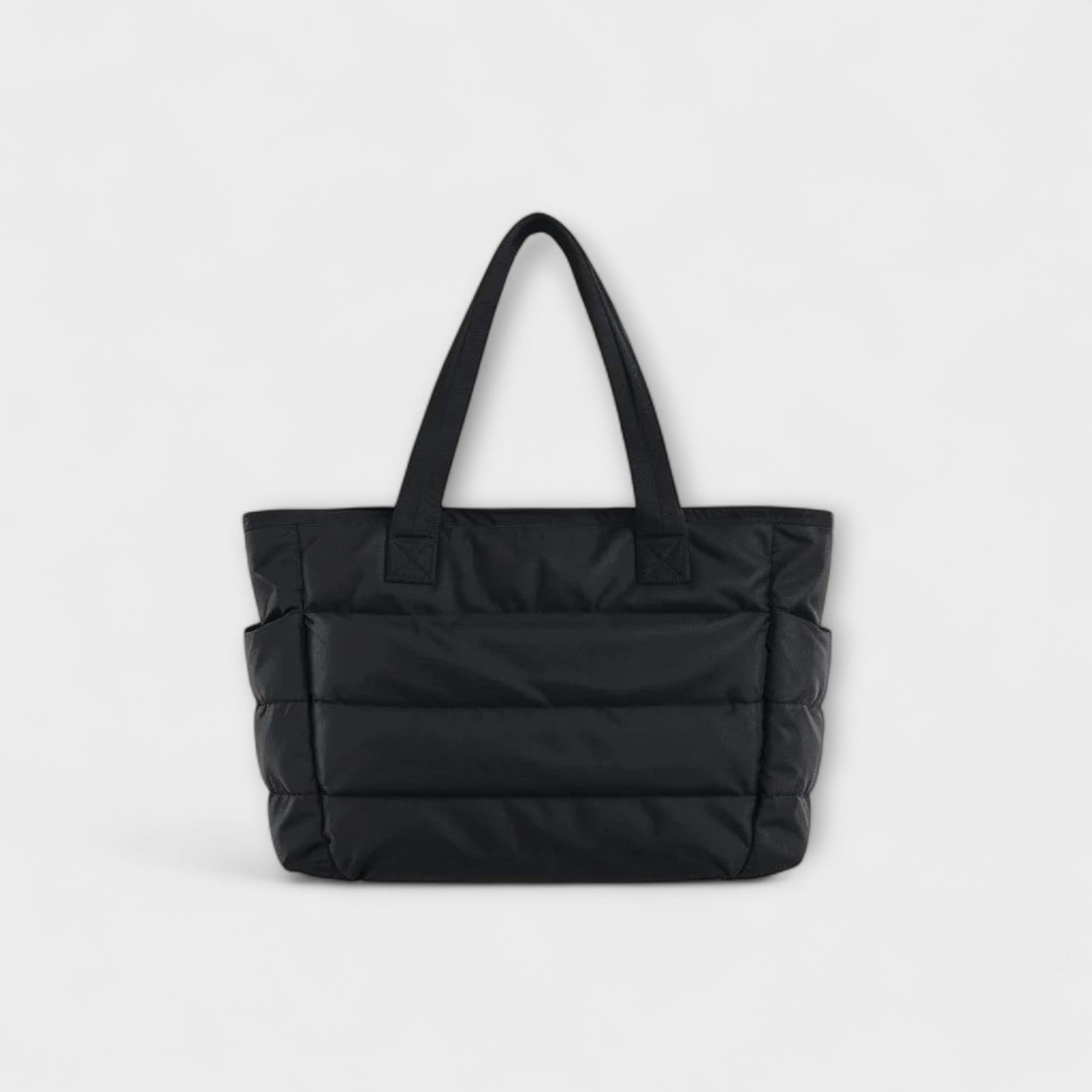Con su moderna apariencia acolchada y funcionalidad bien pensada, la bolsa de transporte de Bettina es la compañera ideal para el día a día y los viajes. Ofrece un amplio espacio de almacenamiento para laptop, libros y más, y protege tus esenciales gracias a su material repelente al agua en cualquier clima.