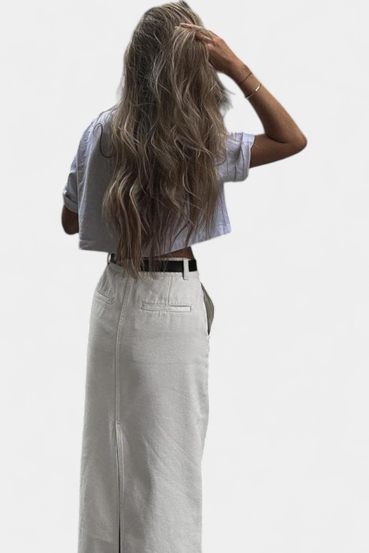 Inspirada en el encanto despreocupado de las calles parisinas, la falda Yenifer combina un corte slim favorecedor con una abertura frontal que aporta sofisticación y libertad de movimiento. Su confección en algodón con un toque de elastano garantiza comodidad sin perder estructura, perfecta para looks urbanos con aire elegante.