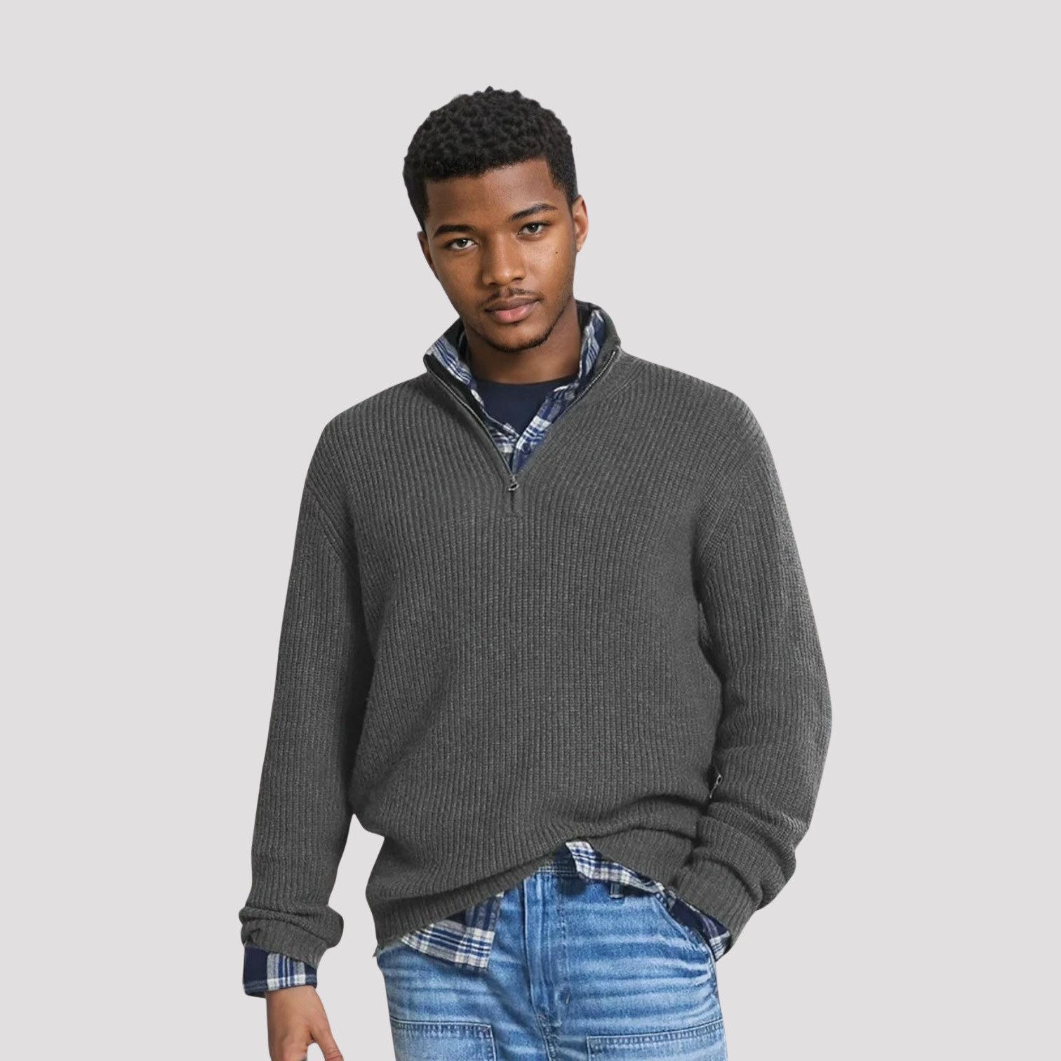 Este elegante jersey de cachemira para hombre combina a la perfección estilo y comodidad. El material de alta calidad promete un tacto suave y agradable, y te mantendrá abrigado y cómodo durante todo el día. El cierre de cremallera hace que sea fácil de poner y quitar, por lo que el jersey es ideal para ocasiones informales y de negocios.